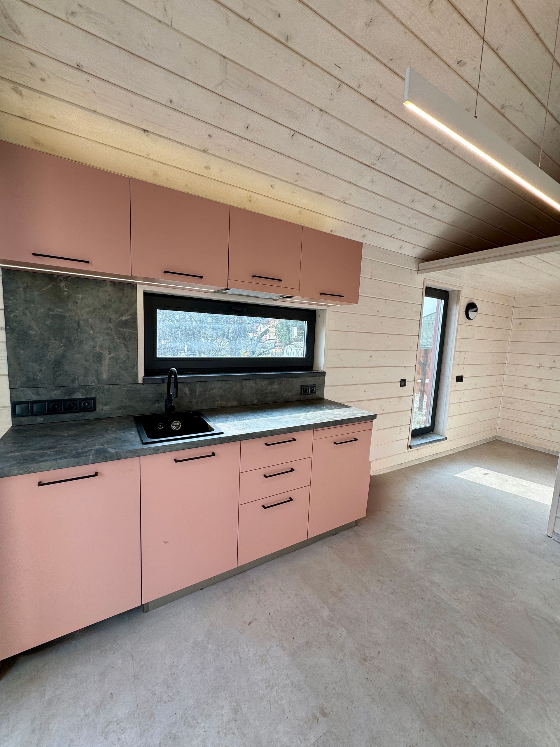 Tato realizace vznikla jako zahradní bydlení určené pro celoroční využití a odpočinek. Projekt jsme realizovali kompletně od začátku až do konce – od přípravy pozemku, založení na zemních vrutech a vybudování přípojek až po samotné usazení domu a finální dokončení.